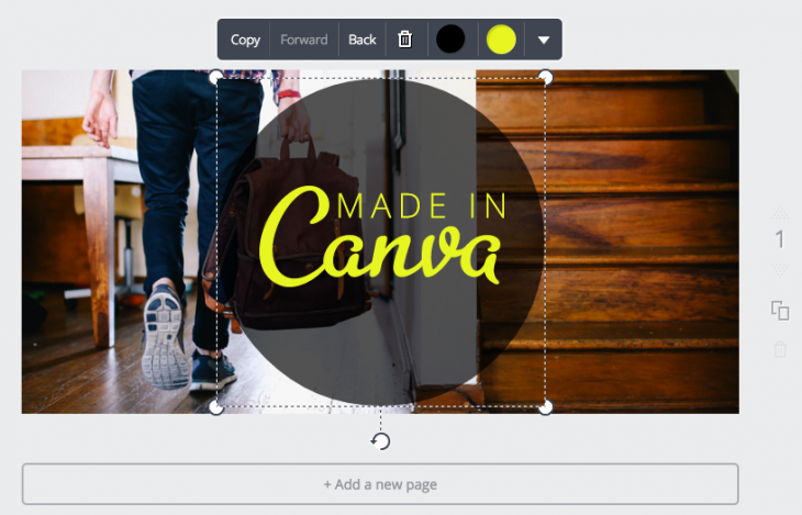 As you can see from the graphic above, there are a number of options you can play with. Drag any element you like from the editor to your canvas. From there, resize, rotate, flip, or even send the object back or forward however you want. A smart feature of Canva are the alignment grids that automatically pop up to help you get everything positioned just right. I also like the ability to change the transparency of any object you place on the canvas. Also, note the duplicate button there to the right of the above graphic. If you want to create multiple designs, you can click that and instantly have a second copy to work with.